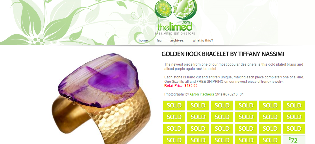 TheLimed offer a venue for talented jewelry designers to sell their goods directly to the public, and the are able to cut out the middle man and sell at wholesale prices, sorry middle man. Plus they don’t pay rent, which is why they can provide the best fashion goods for the best prices.
